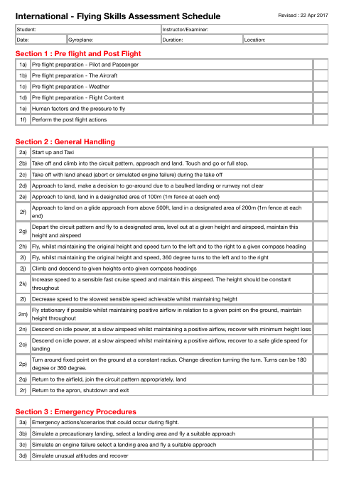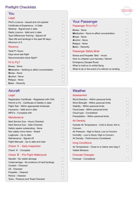 Flight Reference Cards - Templates for in-flight exercises (1 Flights)