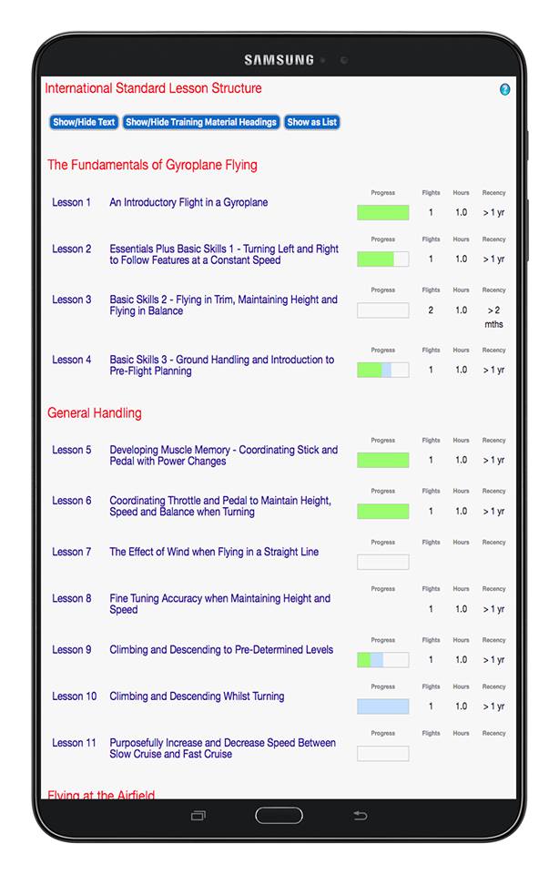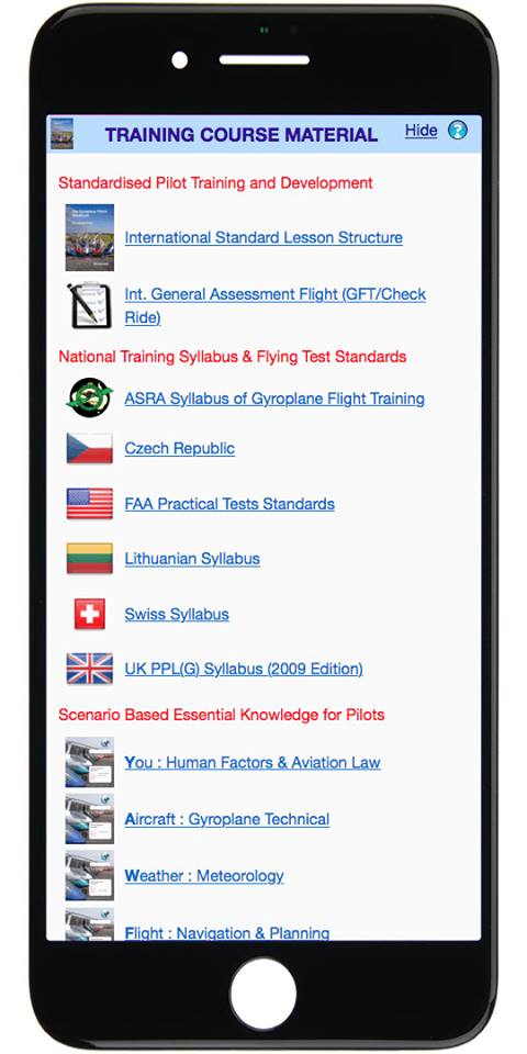 The Pilot Training Course contains all the training material to teach a person to fly a gyroplane. It is available as the International Standard Lesson Structure or by the syllabus of each participating country