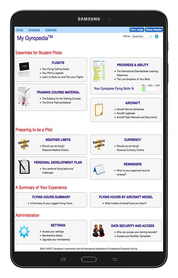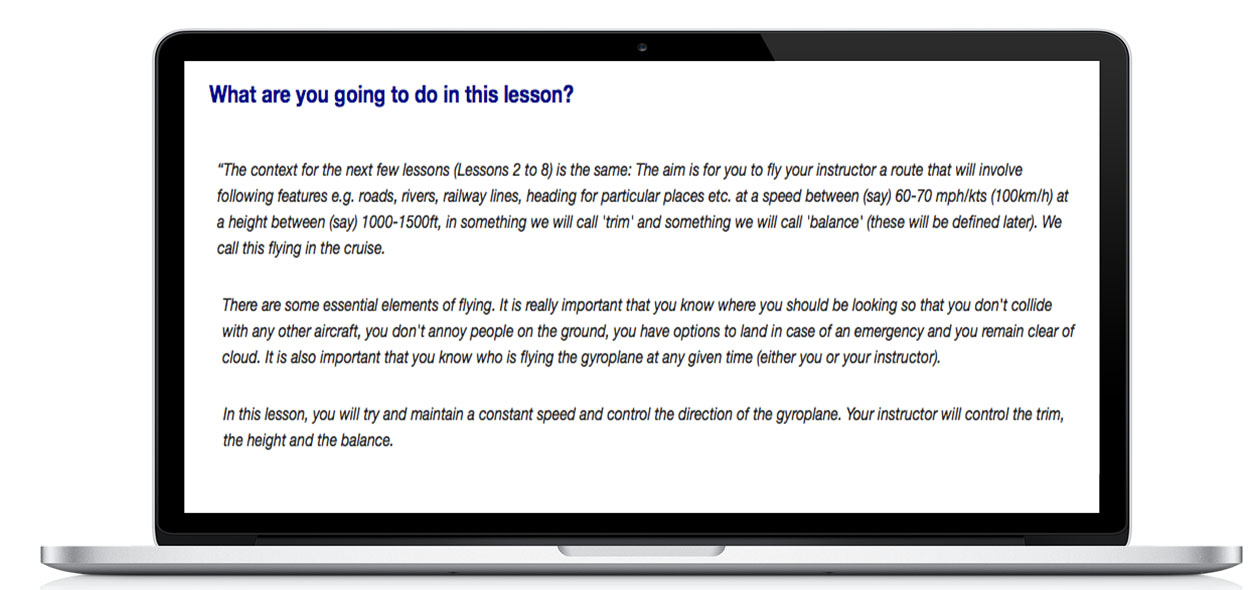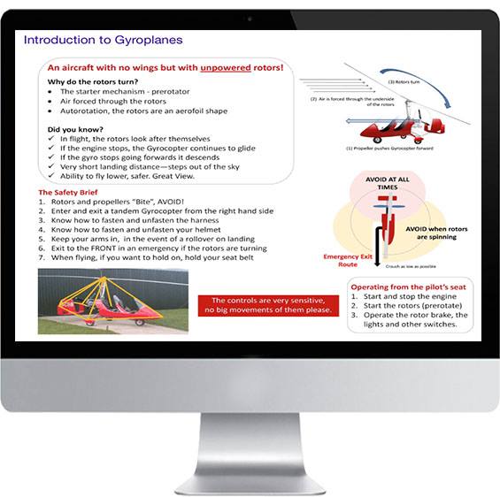 The Gyropedia delivers online training material to support all our core Gyroplane Pilot and Gyroplane Instructor training courses and our ongoing Pilot Development and Instructor Development processes.