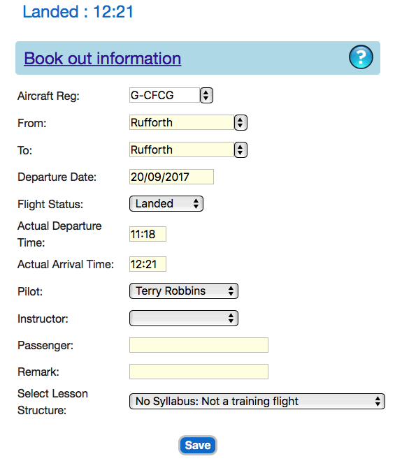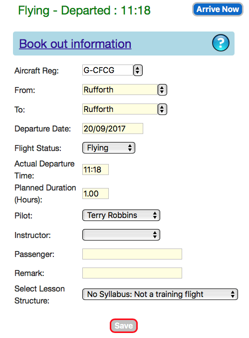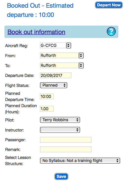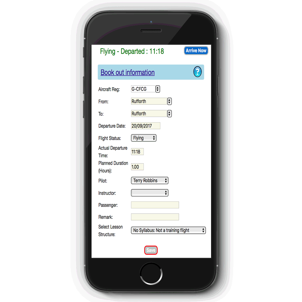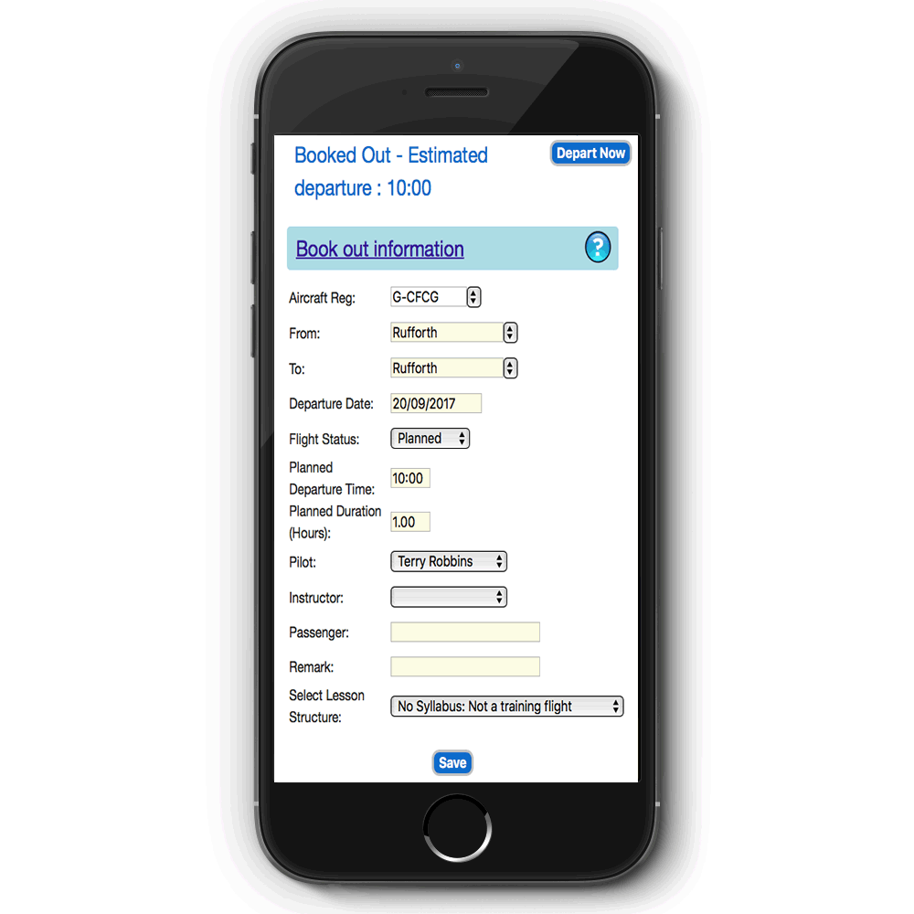 We recommend that you "Book Out" using the Gyropedia when you are initially planning your flight.When you are about to depart, call up the flight using the Gyropedia on your smartphone and click the Depart Now button.