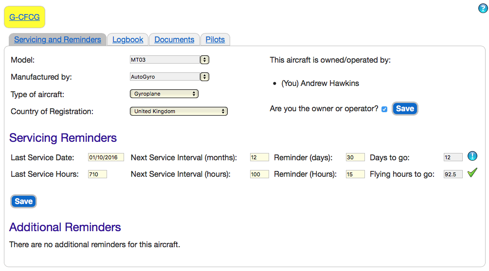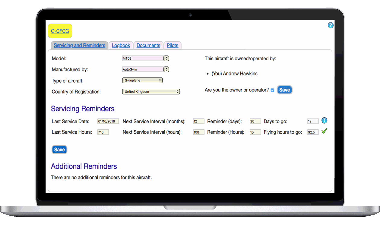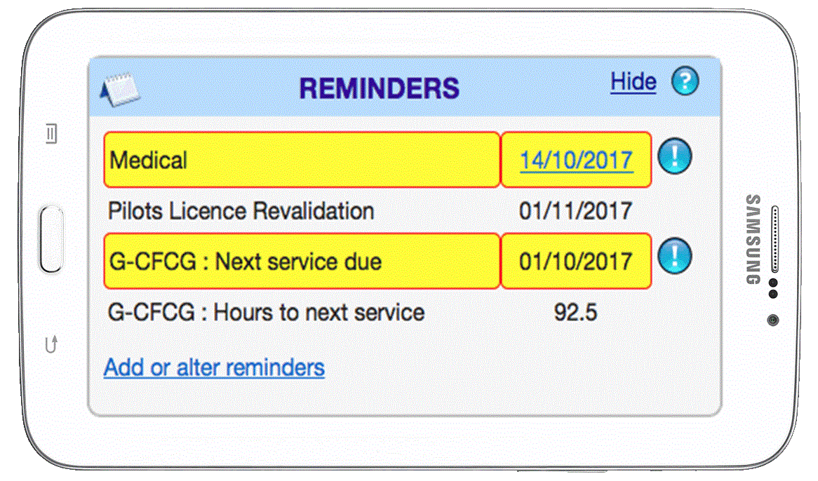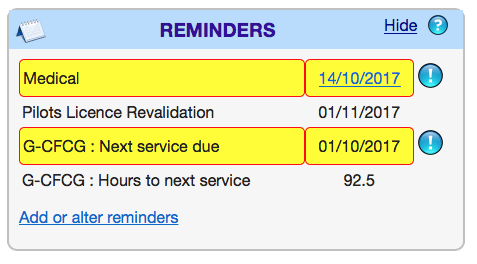 Medical expiry dates, licence revalidations, service and maintenance intervals are important, and you need to keep a log of all your flying.