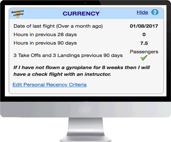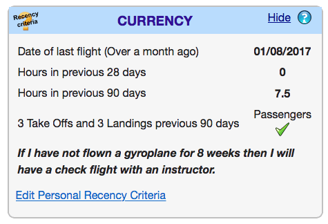 Reminders of key dates relating to your pilots licence and your gyroplane.
